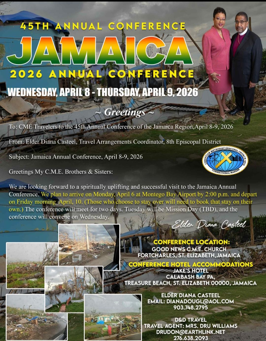 I invite you to participate in this mission journey …. I invite you to support your CME Sisters and Brothers in Jamaica … but I want you to know what you will be in for if you come. And if you cannot come but feel led to support it, please send your funds – before March 20 for more emergency relief, and after March 20 to support the General Conference delegate expenses.